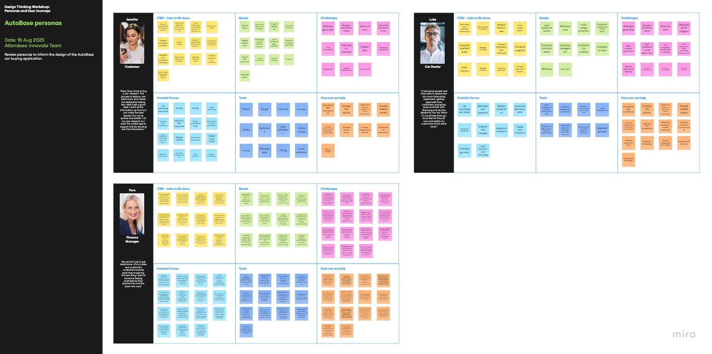 We designed for three distinct user types with different needs and technical literacy levels. Customers (25-35 years old, digital-first expectations) want to browse vehicles remotely, get pre-approved for financing, and minimise time spent on administrative tasks at the dealership. They research online for 2-3 weeks, visit 3-4 dealerships, and resent repeating the same verification process at each location.